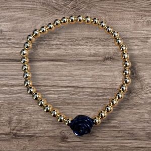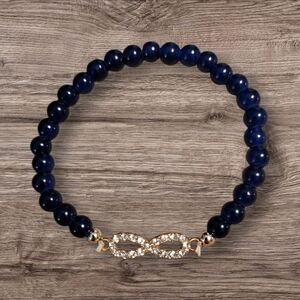 This infinity bracelet set features a blend of gold and deep blue tones, perfect for adding a touch of elegance to any outfit. The intricate design and rich colors make it a must-have accessory.