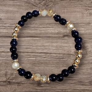 🩷3 for $15: Set of 5 4mm Infinity Stretchy Bracelets, Navy & Gold Tone, New