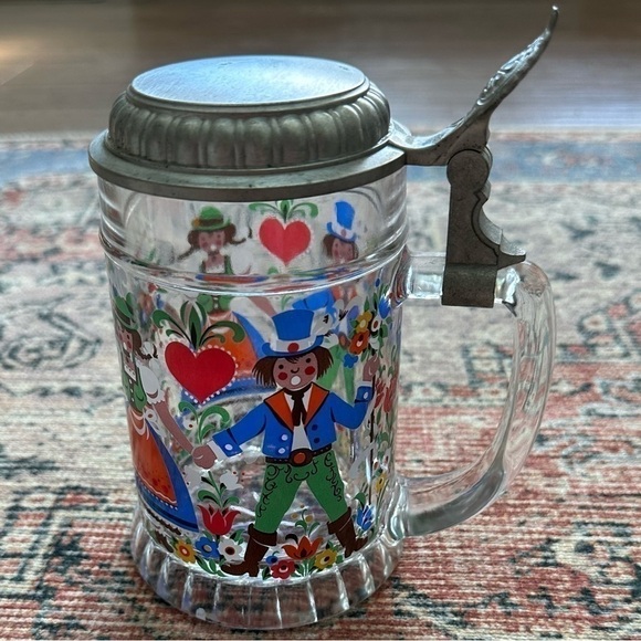 3 for $15 VINTAGE West German Clear Glass Young Lovers Stein with Pewter Lid