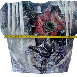 Butterfly and floral print top with a relaxed fit, suitable for casual outings or a day at the park. Offers effortless style and comfort.