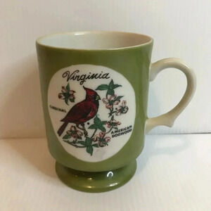 Vintage mug. Small. Green and cream porcelain . State bird and flower. No chips or cracks.