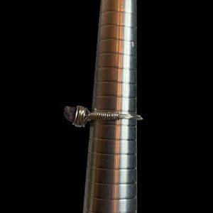Handmade wire wrapped amethyst ring with silver colored wire