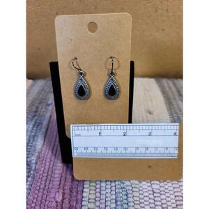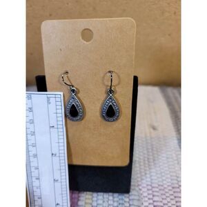 (3 for $15)~JoMa~ Silvertone Teardrop Earrings with Black Accent- NWT