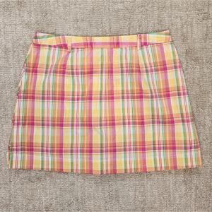 Pink plaid skort from B.Moss. 97% cotton 3% spandex Size 6 Waist 14" Length 14 1/2"