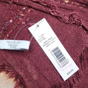 Burgundy scarf from Anna & Ava. Earth toned threads woven across. 100% acrylic.