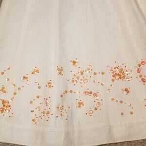 Beautiful cream colored linen blend skirt from I.C.E. Orange and coral beads and sequins along the bottom. It is lined.55% linen 45% rayon