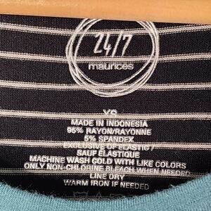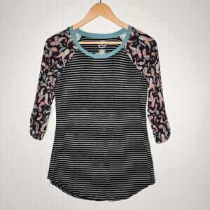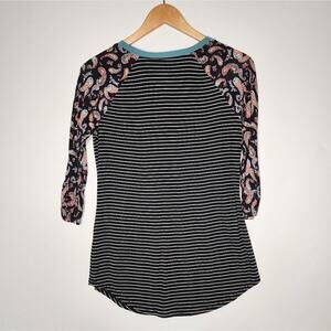 Black stripe with paisley sleeve 3/4 length sleeve t shirt from Maurices 24/7. 95% rayon 5% spandex