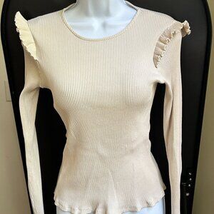 ZARA Basic Ribbed Flutter Shoulder Long-sleeve Top Size Large