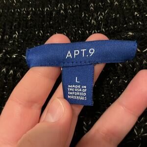 Apt. 9 Metallic Tunic Sweater, size Large. Black with white and metallic silver threads woven throughout.