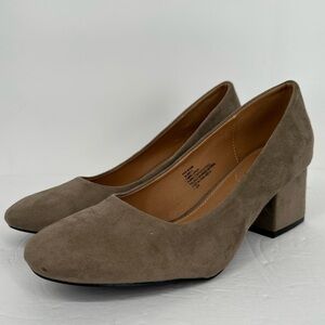 🌸3 for $20 Comfortview Low Heel Vegan Suede Taupe Heels