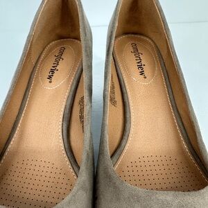 Comfortview Low Heel vegan Suede Taupe Heels. See pics for condition. 2 inch heel. Size 7.5