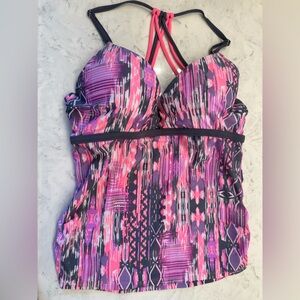 🌸3 for $20🌸 FREE COUNTRY Womens Swim Suit Pink Tankini Gray Top M (8/10) UPF
