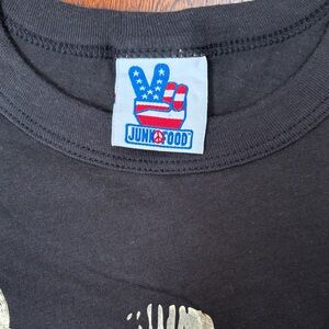 Junk Food Clothing black tee with striking gold graphic. Soft cotton/polyester blend. Nonsmoking home. Great condition. Size small.