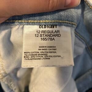 Old Navy The Sweetheart Distressed Jean Shorts, size 12. Light wash, stretchy fabric, slight distressing, rolled/ripped hem. 4.5” inseam. In excellent used condition.