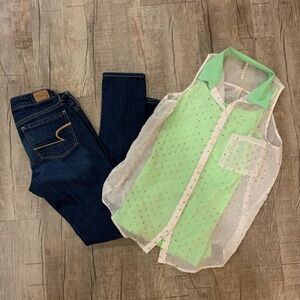 💙3 for $20💙Sheer white and silver polka dot top