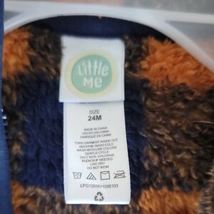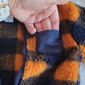 3 for $21 item🎉Little Me Fuzzy Plaid Hoodie - Orange and Blue