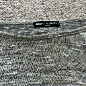 Elevate your style with this chic Cha Cha Vente lightweight sweater, featuring a flattering hi/low hemline and a stylish blend of gray, cream, and gold threads. With 3/4 sleeves and a unique gold zipper accent on the back, this versatile piece is perfect for transitioning between seasons.