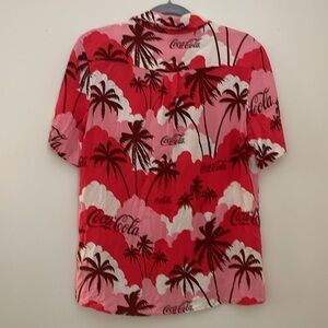 3 for $25! Coca Cola Button Down Hawaiian Shirt Pink and Red Palm Trees Mens SM