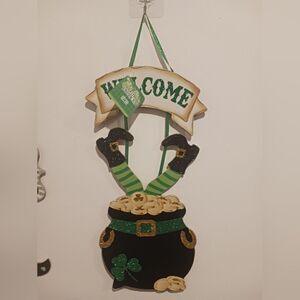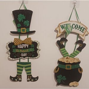 3 for 26 18" St Patricks Day & Welcome Wood Hanging Leprechaun Pot of Gold Wall