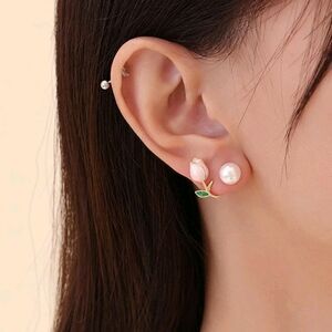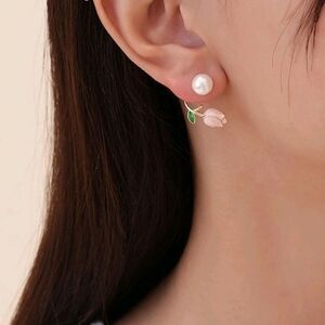 3 for $26 - Pink Tulip Pearl Flower Earrings