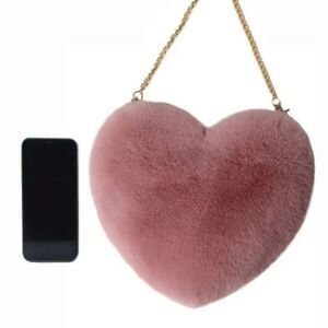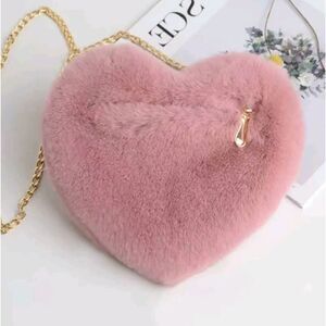 3 for $26 Soft Pink Heart Shaped Fluffy Crossbody or Shoulder Bag w/ Gol…