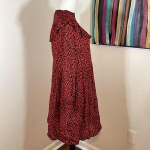 -Soft, flowy fabric with red and black design similar to leopard print