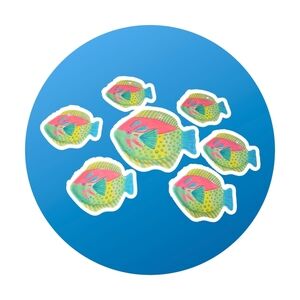 Brighten up your next meal with these vibrant fish plates and server. Perfect for aquatic-themed decor, this set features a mix of red, green, and yellow colors. Ideal for fish enthusiasts.
