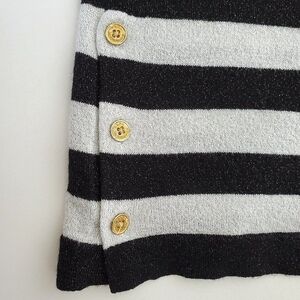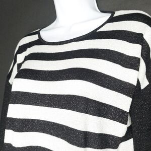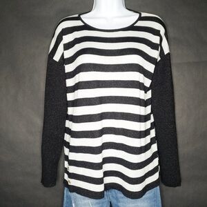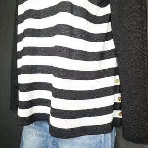 Dana Buchman silver and black striped shimmer sweater. Very pleasant to wear. Decorative buttons on a side.