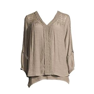 John Paul Richard Cotton Blend Taupe Crochet Embroidered Pleated Tunic