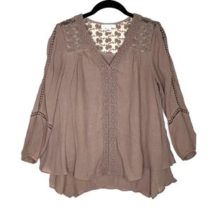 3 for $30! John Paul Richard Layered Crochet Lace Embroidered Long Sleeve Blouse
