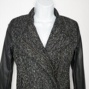 3 for 30! Lira Vintage Wool Faux Leather Cropped Zip Jacket