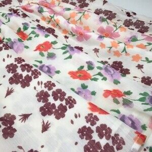 Mixed floral prints cast your cares aside when you don this crinkly, lightweight tassel-tie top with a flowy gathered back and sleeves.