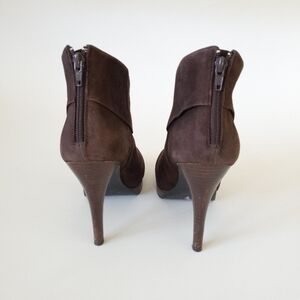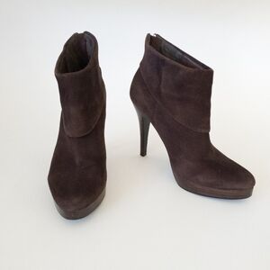 Steve Madden Trishia brown suede platform ankle boots. Futures back zipper opening, heel is approx. 4.7 inches, nice fold over ankle detail.