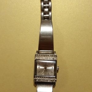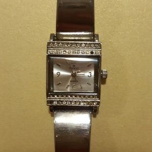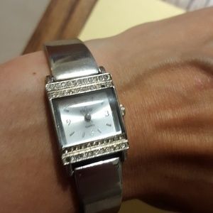 Silver watch in good condition only 1 rhinestone is missing but its barely noticeable. Needs batteries .