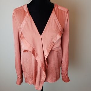 Like new, no visible flaws, Cascade ruffle front top, Classic fit, This blouse features 3/4 sleeves and a v-neck line. crush satin look, Bundle for discount.
