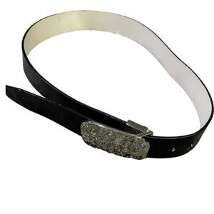 🌟3 for $35🌟 Guess Black Logo “G” Belt Silver Buckle, Rhinestone Adjustable Sz L