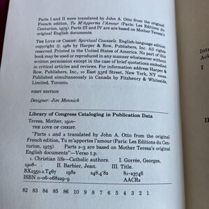 * 3 for $9 * 1982 The Love of Christ, Spiritual Counsels Mother Teresa of Calcutta. First Edition (stated). Edited by Georges Gorree and Jean Barbier