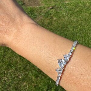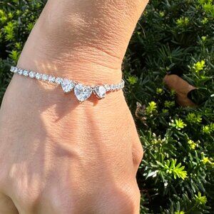 3 hearts Cubic Zirconia Tennis Bracelet Bridal CZ Link Bracelet, Diamond Color
