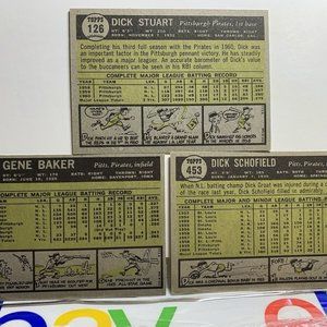 3- high grade! 1961 Topps Baseball Pittsburgh Pirates card lot #339, #126, #453