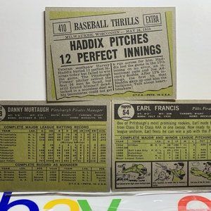 You are buying a high grade 1961 Topps Baseball Pittsburgh Pirates three card lot. Look how great the condition is! This is part of dozens of 1960, 1961 and 1972 TOPPS Pirates card lots that I have on eBay now. Free combined shipping in cards! No buy it now so no need to ask. This card will be carefully Shipped with USPS First Class mail. Lucky winner to pay for delivery confirmed mail. We ship within one day of payment and leave positive feedback after we get positive five star feedback. Contact us if you run in to any problems. We are a TOP seller as we offer only the highest quality at a decent price and ship lightning fast! You can also check us out on our Facebook page- Rare Collectibles