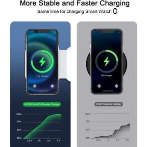 🧿Quick Charge 3 Modes Simultaneously Charge: You can use this UCOMX wireless charger to charge your Apple devices. We have made a breakthrough in the use of upgraded coils, which can increase the power conversion rate by 35 %. The 3 modes of wireless charging station are phone 10W, AirPods 5W and iWatch. A UCOMX integrated wireless charger can replace 3-4 charging devices, which is economical and beautiful. Must be connected to external power supply for use!