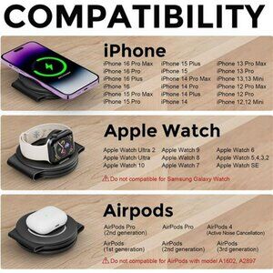🧿Fast Wireless Charging Station: This wireless charging station is specifically designed to be compatible for iPhone Airpods Apple Watch; With an 18 W quick charger, you can fully charge your device in just 2-3 hours. 3 in one charger for Apple Watch/iWatch/Airpods/iPhone 16 15 14,13,13Pro,13Pro Max,12,12 Pro,12Pro Max,12 Mini