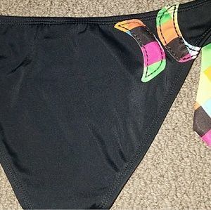 2 bikinis, 1 having a reversible top! Paid $60-$70 each! These are not perfect but in good condition and have been sanitized, washed with Bac-out- which kills bacteria! Imperfections are not really noticable when wearing but worth mentioning to potential buyers. Pink/Gray has small pick like (not sure how to describe it exactly but zoom in should be able to see what I'm talking about) Black with reversible top has some cracking in the lettering on the one side, other side perfect!
