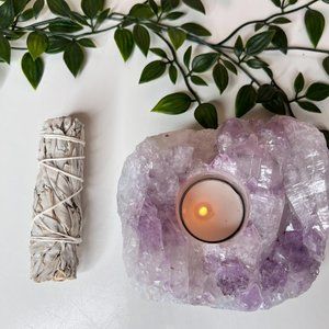 3 lb Amethyst and Sage Bundle | Healing Calming Candle Crystal Tea Light Holder
