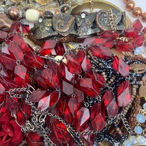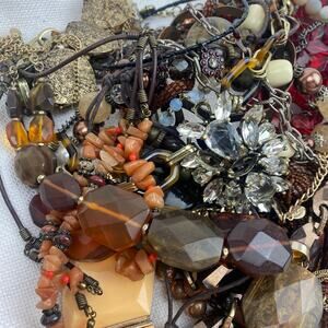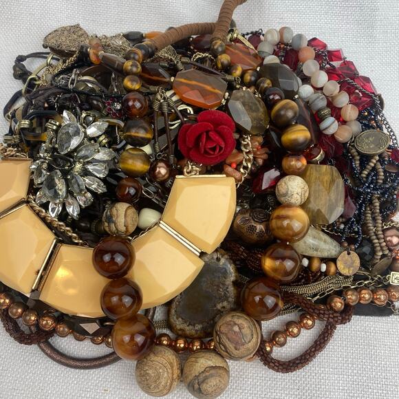 3 lbs Craft Repurpose Jewelry Brown Gold Red Vintage to Now Rhinestone Necklaces