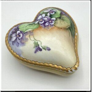 These trinket boxes offer delicate hand-painted designs. The heart-shaped porcelain box features floral motifs, while the rectangular box showcases a lacquered finish.