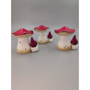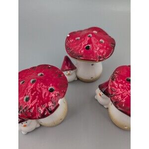 3 mushroom gnome snowman ceramic Christmas decor figurines