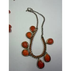 3 orange statement bib flower floral bling enamel necklaces bundle lot