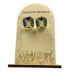 Square Blue and Green vintage earrings by Contempo Fashions.