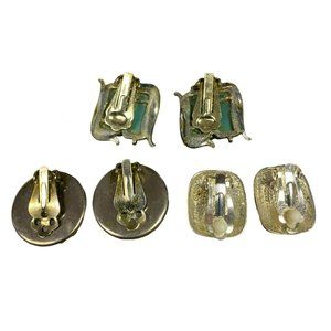 3 pair Vintage Purple, White, and Blue Enamel MCM Clip on Earrings
